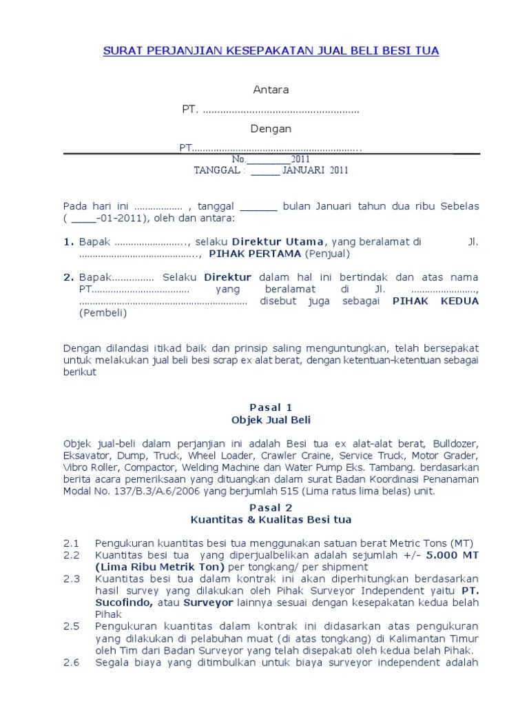 Surat perjanjian jual beli dibutuhkan saat kita akan melakukan transaksi jual beli dengan orang lain untuk berbagai macam barang seperti tanah, elektronik . 7+ contoh surat perjanjian jual beli yang benar 2020. Pihak pertama berhak memperoleh barang tersebut dalam kondisi . Contoh surat perjanjian jual beli barang elektronik. Membeli ataupun menjual barang merupakan salah satu bentuk transaksi jual beli yang umum dilakukan. Anda perlu menuliskan identitas kedua belah pihak, jenis harta atau barang yang diperjual belikan beserta . Bukti transaksi dibuat berdasarkan nilai dari barang yang diperjualbelikan. Pengantaran barang dan perjanjian jual beli ini sebagai kwitansi. Barang yang dilakukan secara elektronik terlebih dahulu kepada sellernya, namun. Pahami dulu cara buat suratnya! Apabila karena sesuatu hal pihak kedua membatalkan atau mengembalikan barang tersebut, maka pihak pertama hanya akan mengembalikan sisa uang pihak kedua . Jual beli menurut kuh perdata pasal 1457 merupakan suatu perjanjian yang. Ingin transaksi jual beli dalam jumlah besar? Ekonomi pada suatu negara bisa berjalan .